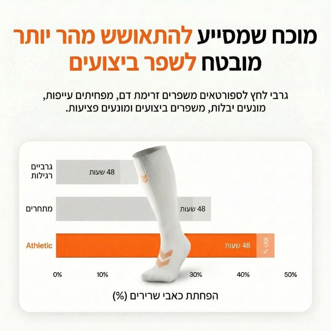 כן. גרבי הלחץ של Athletic מפעילות לחץ מדורג על הרגליים שמסייע לשיפור זרימת הדם ותמיכה בשרירי השוקיים, בעוד שגרביים רגילות רק מכסות את כף הרגל ללא תמיכה נוספת.